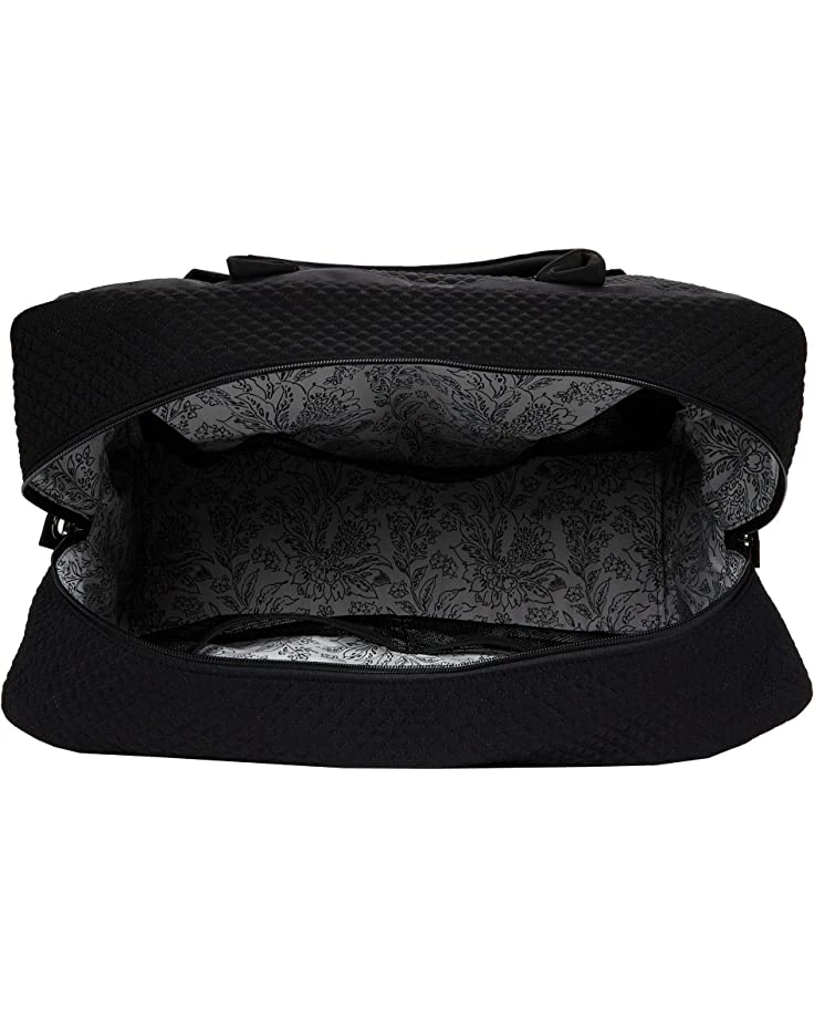 - Microfiber is lightweight, solid-colored polyester. Exterior features 1 slip and 2 zip pockets. Interior features 5 mesh pockets. Trolley sleeve. Removable strap. Zip closures. Capacity 52 L. Remove Strap before laundering. Machine Wash cold gentle cycle. Use non-chlorine bleach as needed, line dry.. Vera Bradley is known for our travel bags for women, men, and kids. We offer cosmetic travel bag, make up travel bag, toiletry travel bag for women, travel bags for men, and travel bags for packing. Our assortment of travel bags includes duffels, overnight bags, lugagge, weekender bags, make up organizers, travel organizers, luggage tags, and more!