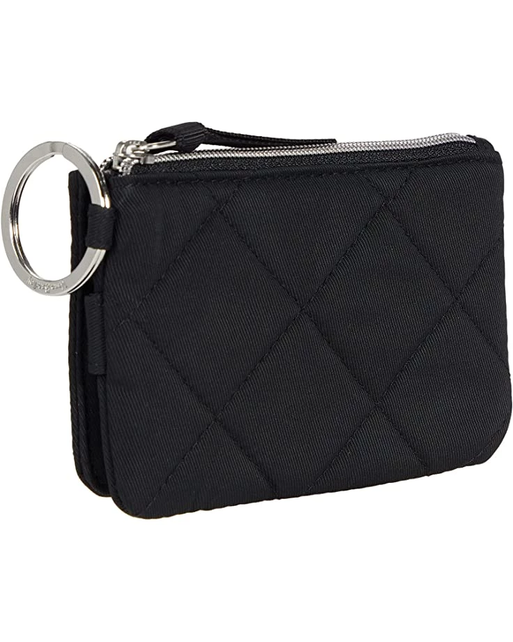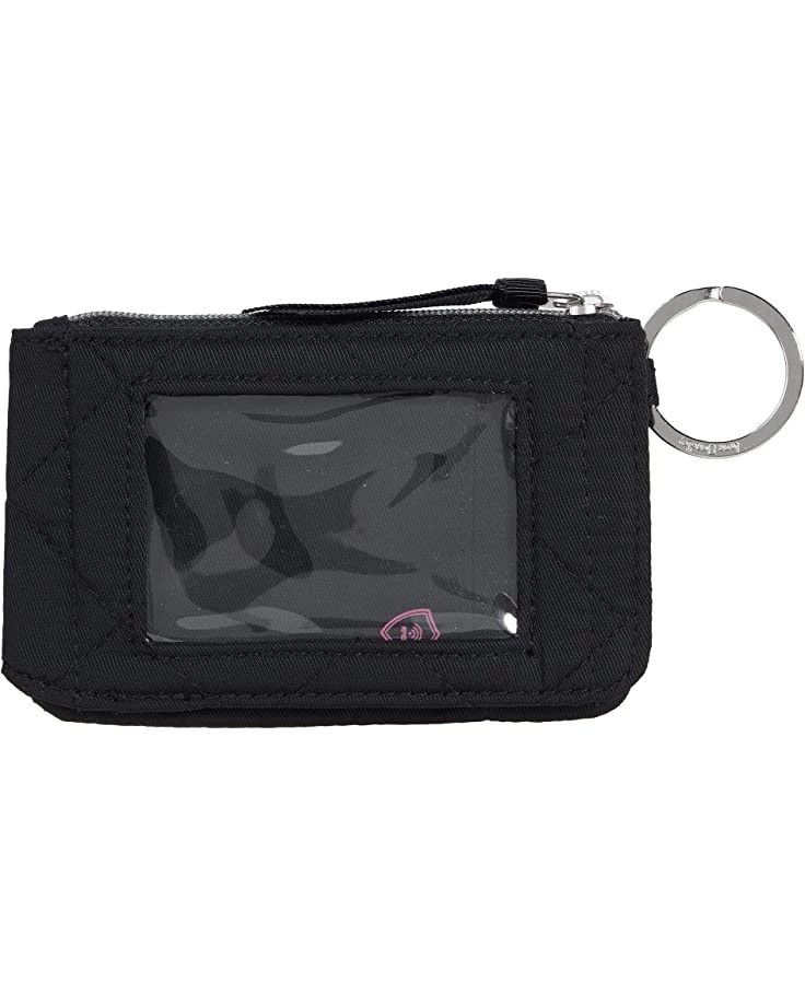 - Bring a lovely finish to your collection with the fresh cotton Vera Bradley® Iconic RFID Deluxe Zip ID Case. Vera Bradley ID holders function perfectly as a badge holder, card holder, an ID holder, a small wallet, a nurse badge holder or a nurse ID holder, and are small enough to put on your Vera Bradley lanyard to create your own lanyard with ID holder. Performance twill fabrication is quilted, sleek, water-repellent polyester. Provides RFID protection for credit and debit cards. Double ID window. Three card slips and one slip pocket. Key ring. Zip and snap closures.. Spot clean with mild detergent and a soft, damp cloth, rinse thoroughly; lay flat to dry